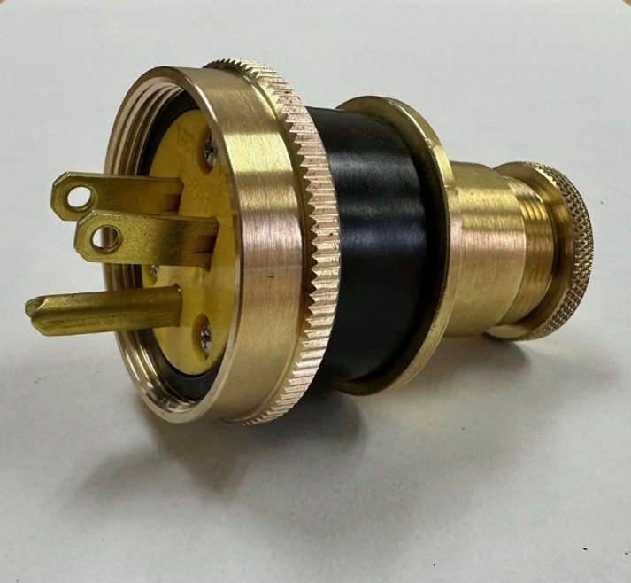 MARINE PLUG MALE 15A 125V AC 2-POLE 3-WIRE BRASS STRAIGHT BLADE PAULUHN / EATON / CROUSE-HINDS 2503B-125